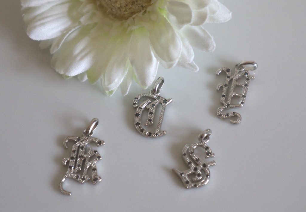 ブラックダイヤモンドを散りばめたイニシャルペンダントトップ